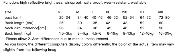 Use: for cats & dogs—measure neck/chest/back and check size chart